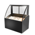 Thiết kế kính cong sang trọng kết hợp mặt bàn đá cẩm thạch hiện đại và đèn LED chiếu sáng tạo ra điểm nhấn thẩm mỹ mạnh mẽ, đồng thời đảm bảo kem luôn giữ được độ mềm mịn và hương vị tuyệt hảo.